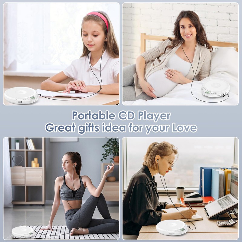 Gueray CD Player Portable CD Player Children Portable CD Player for Car Discman with Headphones LCD Display Support ASP PROG Memory Function Repeat Function Sound Effect White
