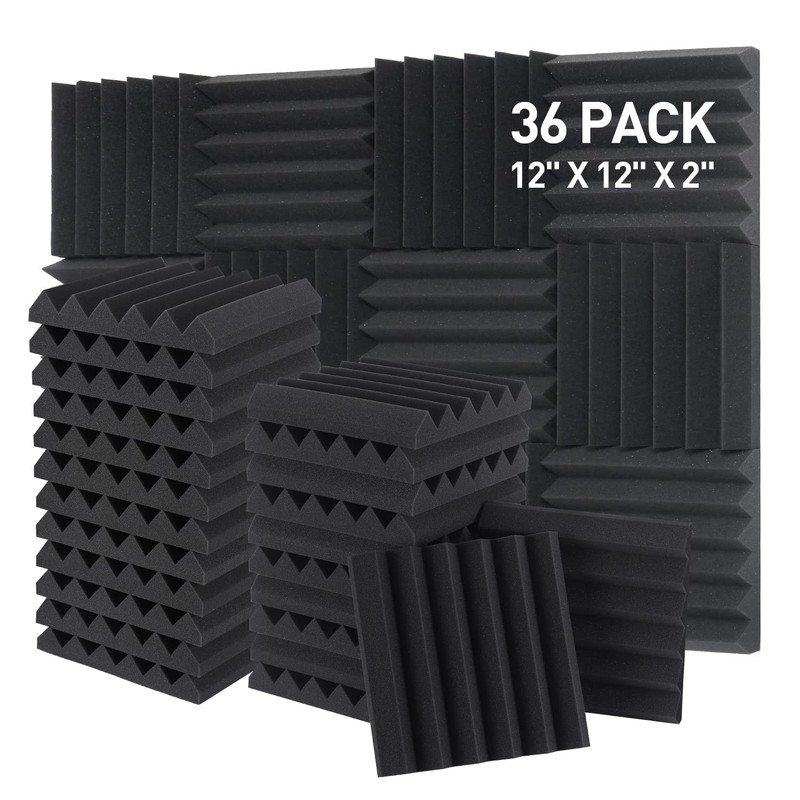 - Easy to Install36 Pcs Covers 36 Square Feet. Each tile is 1 square foot of 2 inch thick acoustic panels. Using stickers or a special adhesive spray for acoustic foam, the panels are very easy to install on any surface.