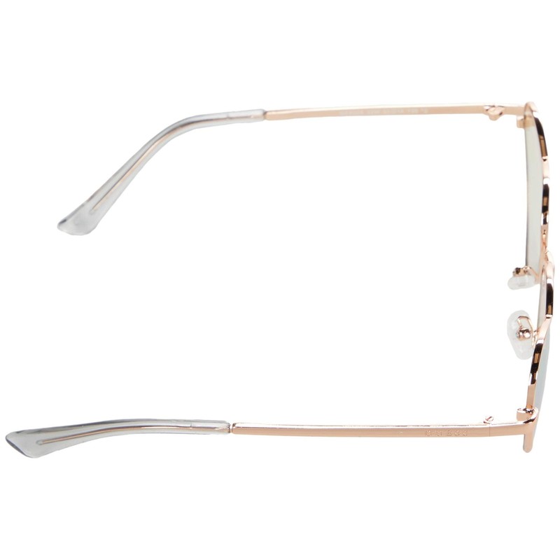 You can have it all when you step out in the fun GUESS GF4008 heart-shaped sunglasses! Metal frames in a super cute heart-shaped silhouette. Metal and plastic arms. Brand detail at the temples. Clear and adjustable nose pads. Plastic lenses offer 100% UV protection. Gradient lens coating. Protective soft case included.