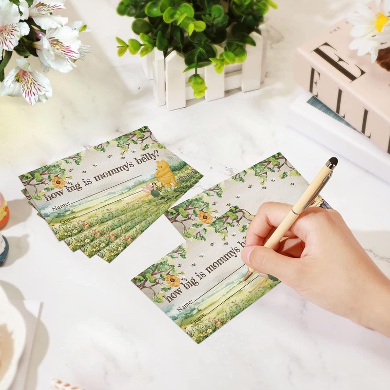 Guess How Big Is Mommy's Belly Game, Winnie Baby Shower Game with Box and 50 Guessing Cards, Baby Shower Party Favor, Winnie Decorations for Gender Reveal