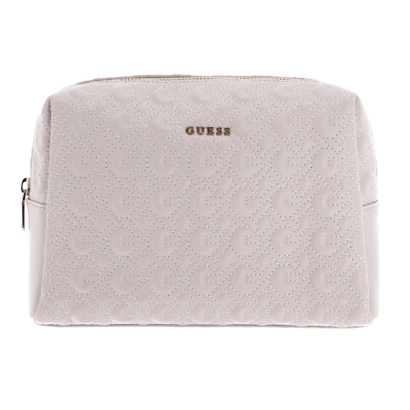 - With this GUESS cosmetic bag, you can travel the world and have everything safely stored and always at hand. In this large top zip cosmetic bag, cosmetics and everyday care products find a fashionable place. Dimensions: 23 x 16 x 8.5 cm