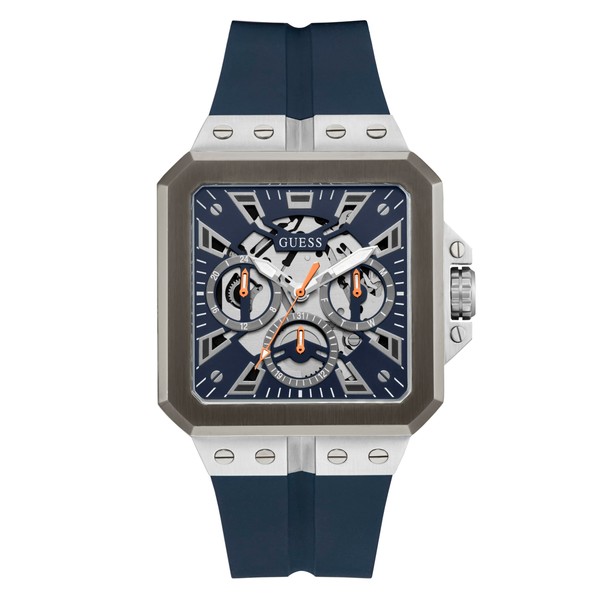 GUESS Men's 42mm Watch - Navy Strap Navy Dial Silver Tone Case