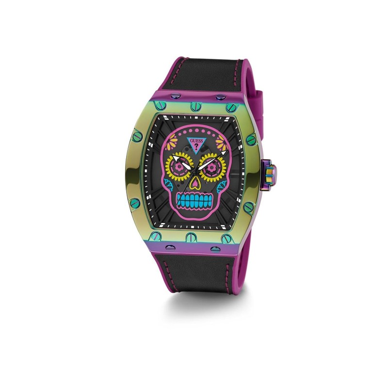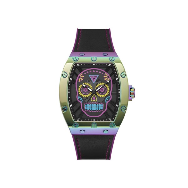 GUESS Men's 43mm Watch - Multi-Color Strap Black Dial Iridescent Case
