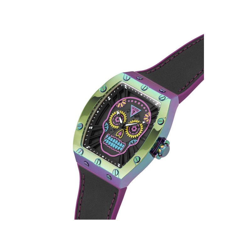 GUESS Men's 43mm Watch - Multi-Color Strap Black Dial Iridescent Case