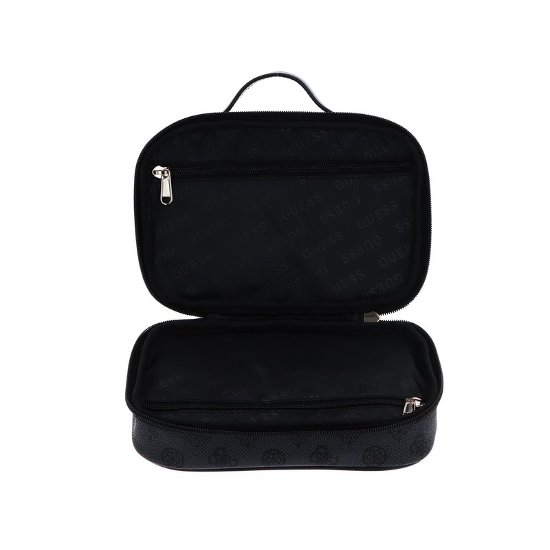 - The GUESS Wilder Dual Travel Case will accompany you in fashion when travelling. In their practical form, cosmetics, skin care items or similar find an optimal storage space. Dimensions: 21.5 x 14 x 8.5 cm