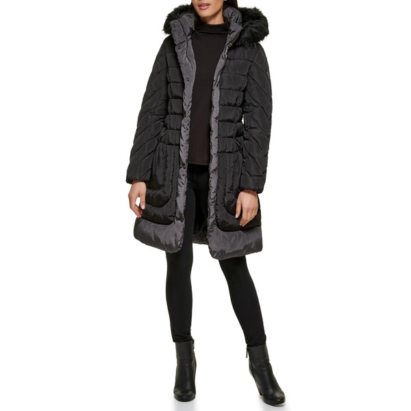 - Features: coat, cold weather, long, hooded, belted, puffer