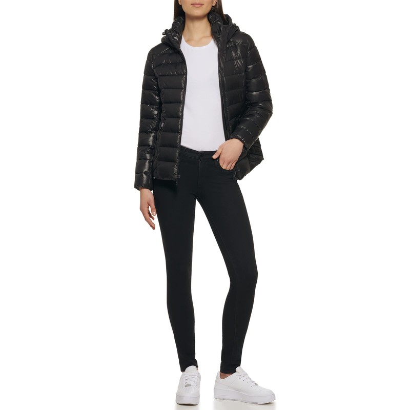 GUESS Women's Midweight Puffer Jacket, Quilted Black 2, Medium