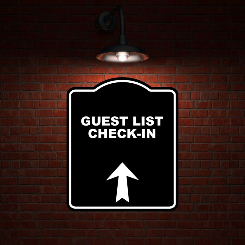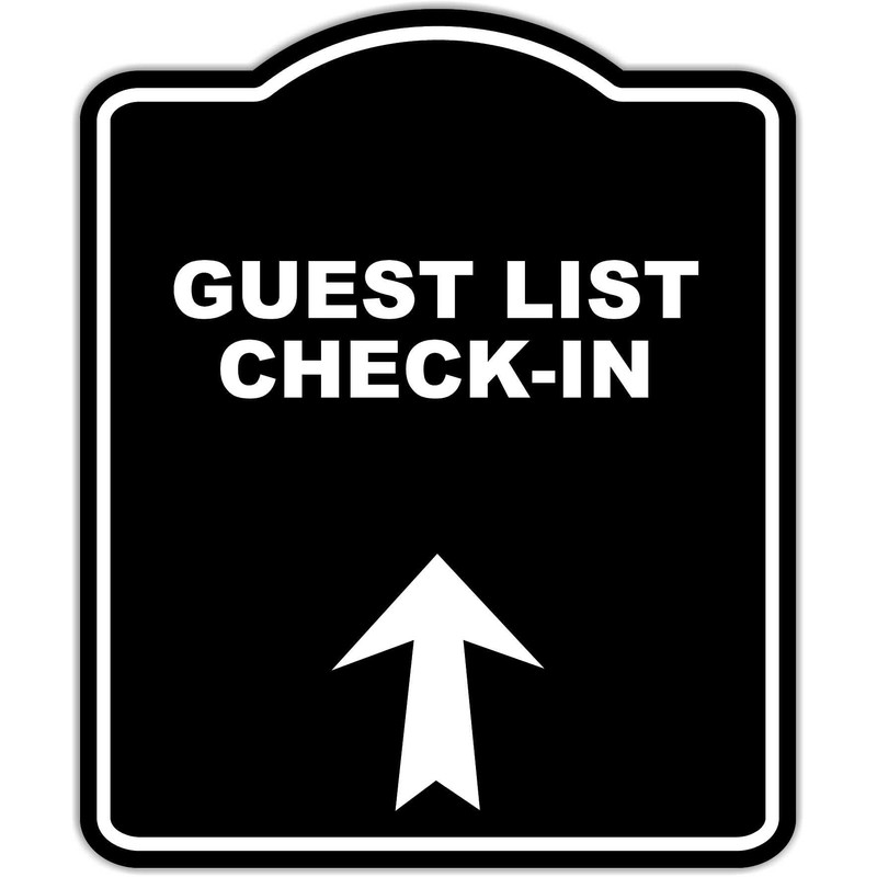 GUEST LIST CHECK-IN Black Sign Arrow Up Aluminum Composite Sign 15 x 18 inches