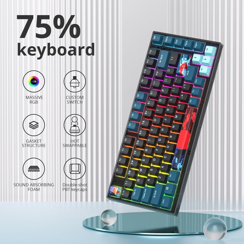 - 【75% RGB Mechanical Keyboard】75% layout with 82 keys, which saves 25% of the pc gaming keyboards space and makes the desktop more concise. This gaming keyboard is a boutique equipment for PC gamers and office users