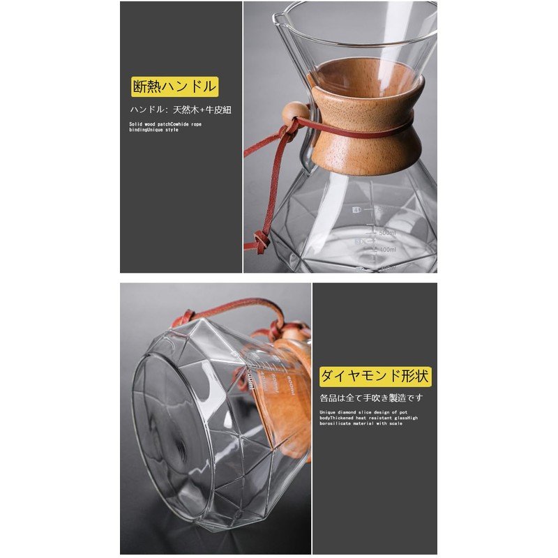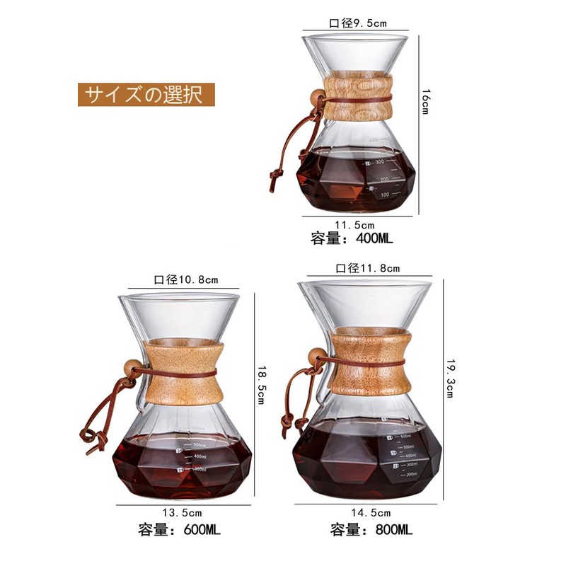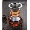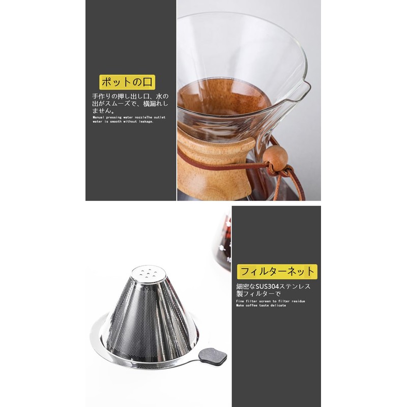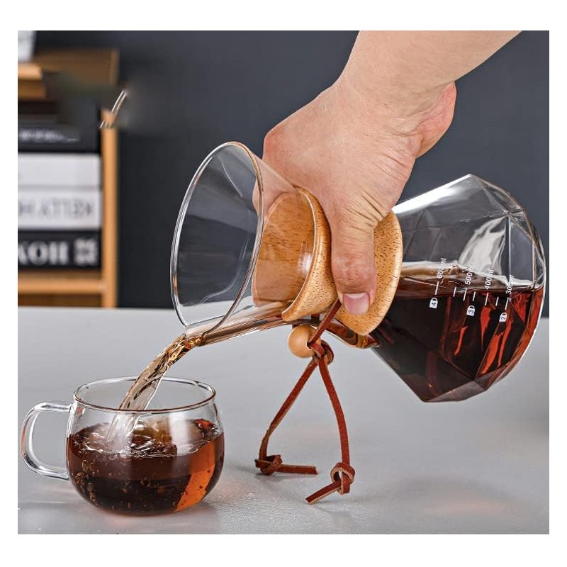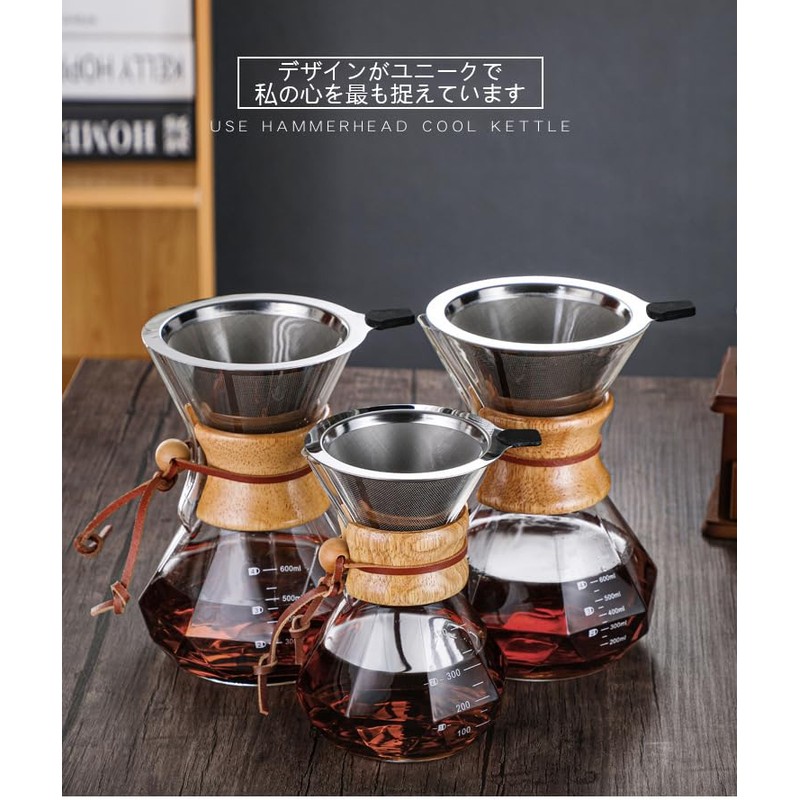 - [Material] Filter: SUS304 high quality food grade stainless steel. Coffee pot: High borosilicate glass Handle: Natural wood + cowhide leather cord, Capacity: 13.5 fl oz (400 ml)