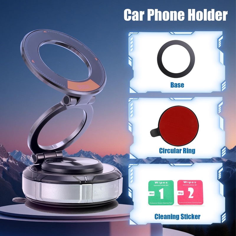 • ENHANCED MAGNETIC STRENGTH: The car phone holders feature a dual-layer ring design with high-performance N52 magnets, providing ultra-strong magnetic force. The native closed magnetic array ensures no magnetic loss for 10 years. Whether you're making sharp turns or navigating bumpy roads, you can confidently handle any situation.