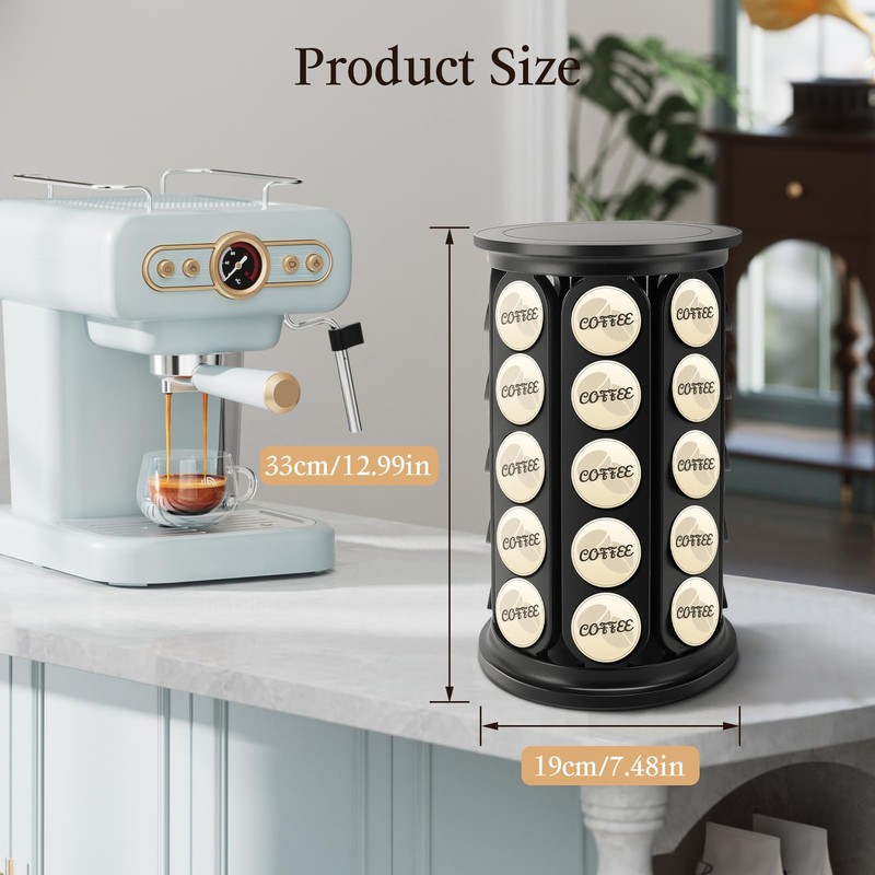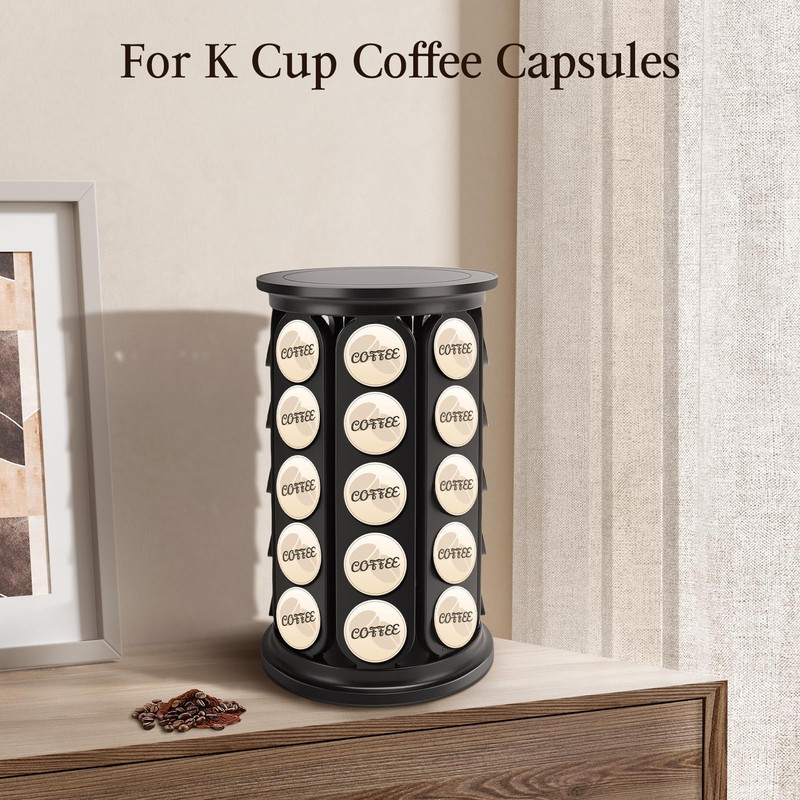 - 360 ROTATING BASE The coffee capsule holder features a 360 rotating base for easy access to the capsules, making it easy to find and choose your favorite flavor. Once assembled, it provides stable support and is not removable.