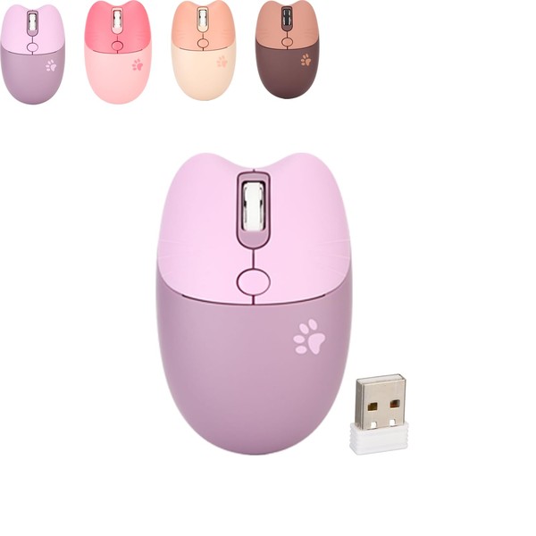 Gugxiom Ratón Inalámbrico Cat, Ratón Lindo 2.4G, Ratón Kawaii, Ratón Ligero sin Sonido, Ratón dpi Portátil de 3 Niveles, con Receptor USB, para Computadora Portátil M3 (Púrpura)