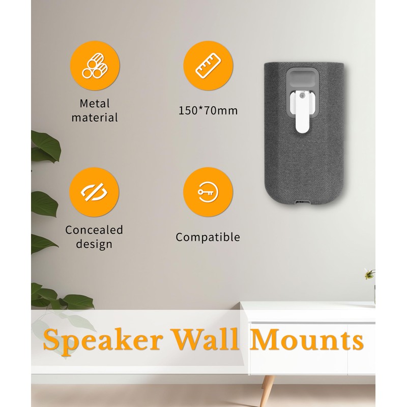 - :The wireless speaker wall bracket provides optimal space efficiency while offering an elegant and discreet look. With a hidden design, the bracket will not be visible at all after installation, only the speakers, which is more aesthetically pleasing.