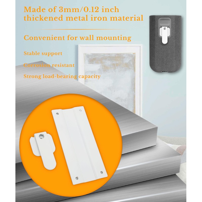 - METAL MATERIAL:The wireless speaker wall mount bracket is made of metal material for easy wall mounting. The speaker wall mount bracket is made of 3 mm/0.12 inch thickened metal iron material, durable, strong load-bearing force, stable support.