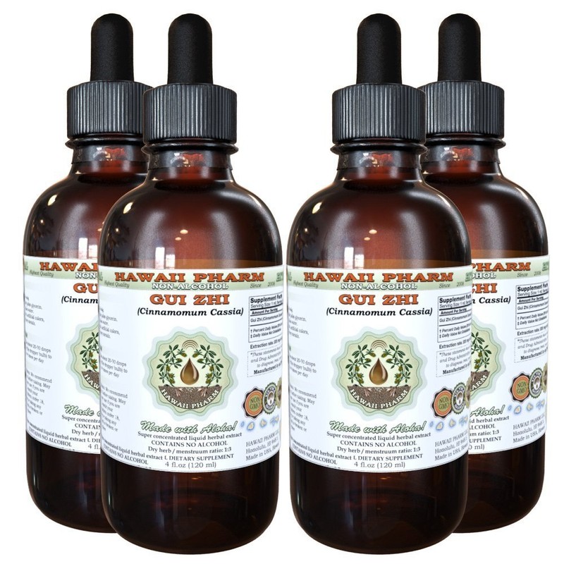 GUI Zhi Alcohol-Free Liquid Extract, GUI Zhi, Cinnamon (Cinnamomum Cassia) Twig Glycerite Hawaii Pharm Natural Herbal Supplement 4x4 oz