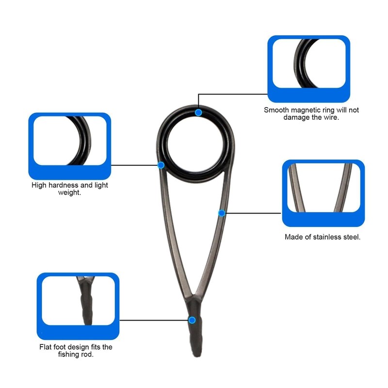 - Buen material: marco de acero inoxidable y anillo de cerámica resistente al desgaste, el kit de reparación de cañas de pescar no es fácil de romper y es muy duradero para uso a largo plazo.