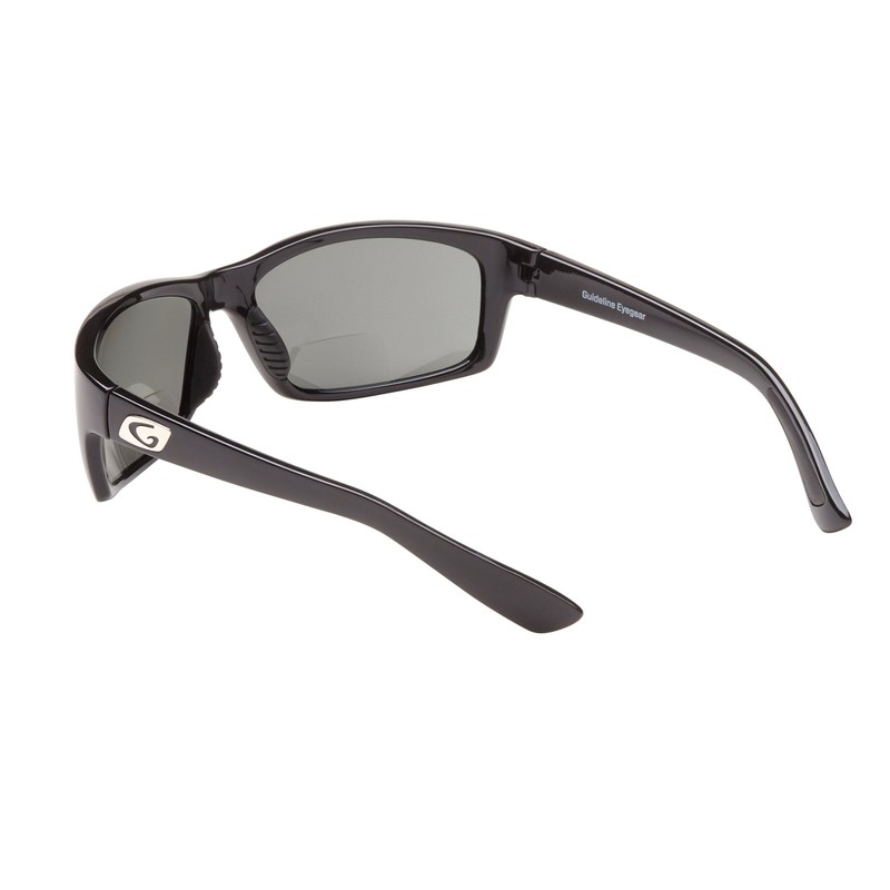 Guideline Eyegear Surface Fishing, Boating, Water Sports Polarized Bifocal Sunglasses with Deepwater Gray Lens, Shiny Black Frame(+1.50)