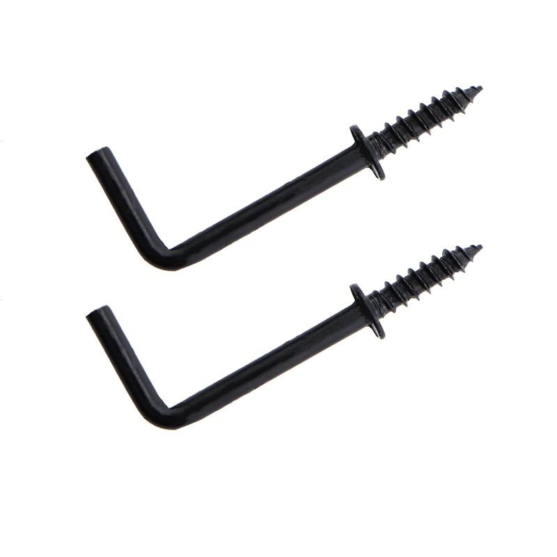 Guifeng 50PCS 37mm Length Black Right Angle Medallion L Shaped Hook Screw Metal Bent Hook Right Angle Hook Screw for Hanging Jewellery Decorative Plant Cup