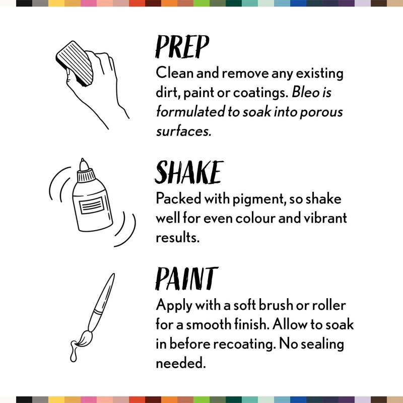 • Durable & Waterproof Finish – Once dry, Bleo offers a long-lasting, waterproof result on fabric, untreated wood, terracotta, and other porous materials.