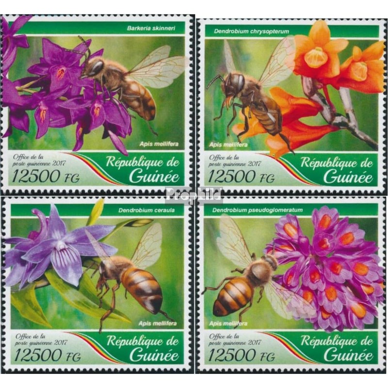 Guinea 12540-12543 (complete. issue) unmounted mint/never hinged ** MNH 2017 Orchids and Bees (Stamps for collectors) Invertebrates Other (insects, snails, bees…)