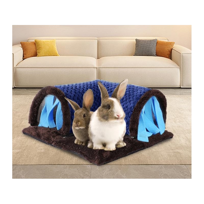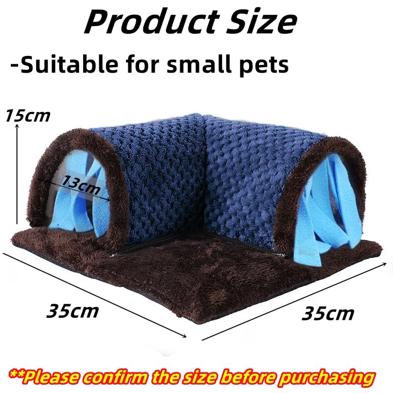 - 3. BED & TUNNEL:This guinea pig fur and toy combines a warm bed and an L-shaped tunnel. It has soft plush and two holes with two interactive balls. When pets are tired of training, they can lie down directly to rest comfortably