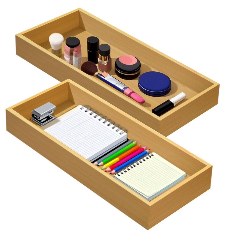 guiogc Desktop organizer, Bamboo storage tray for small tools, For office cabinets Bathroom 11.8x4.92x1.34 Inches(1 - PCS)