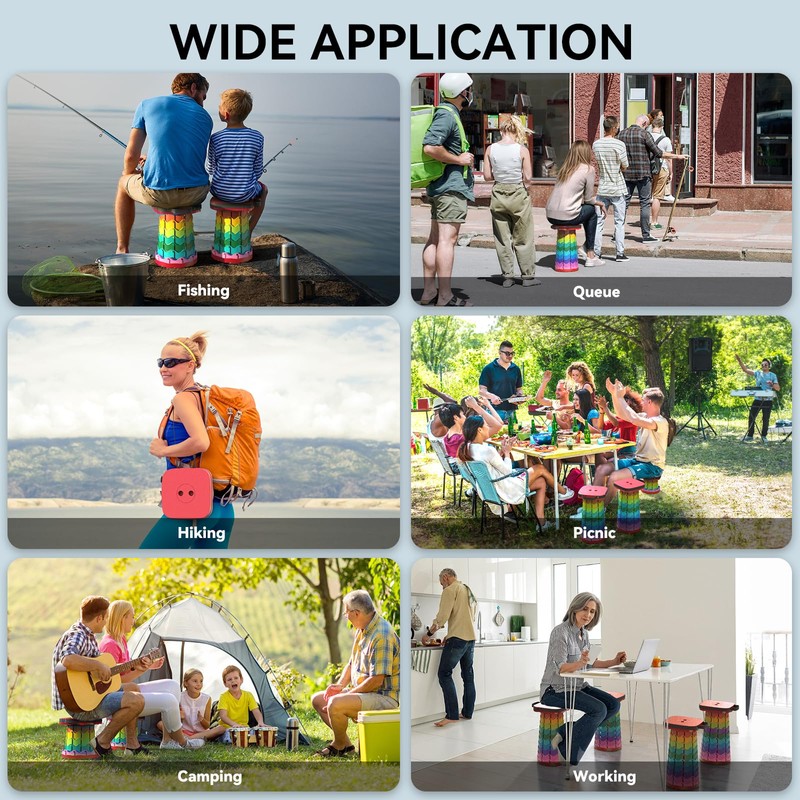 • Collapsible Camping Stool - Our retractable stool can be adjusted to the desired height ranging from 2.5 inches to 18 inches. Different heights can be set according to your usage scenario. You will find that this fold-up stool is suitable for people of all ages.