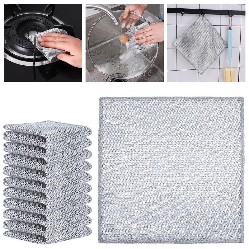 Guiqulai 15Pcs Wire Mesh Cleaning Cloths Dishwashing Rags Non-Scratch Kitchen Cloths Multipurpose Cleaning Rags Wet and Dry Double Sided Reusable Towel for Kitchen Dishes Pots Stove Easy to Rinse