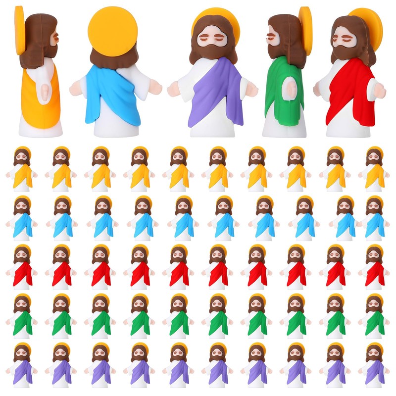 - Colorful Combination: This set contains 50 mini Jesus figurines in five bright colors: blue, green, purple, red and yellow, 10 pieces for each color. Meet different occasions and personalized preferences