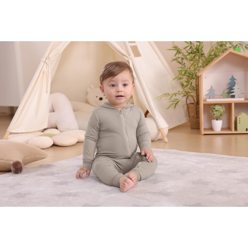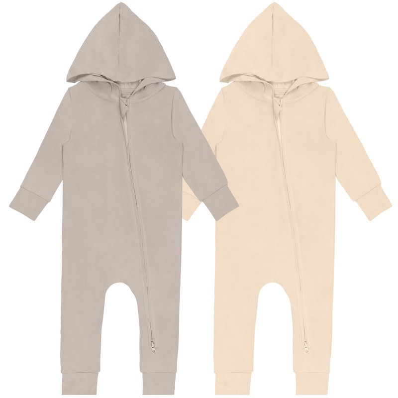GUISBY Rayon Made from Bamboo Footless Pajamas with Mitten & Hood – Neutral Long Sleeve Romper, Soft Zip-Up Sleepwear Apricot+Khaki 6-12 Months