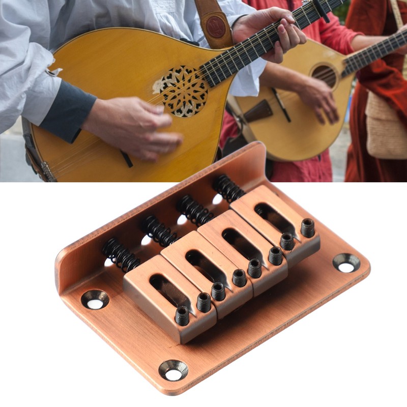 Guitar Fixed Bridge Electric Bass Hardtail Saddle Bridge Tool Metal for 4 String Ukulele GA909 Bronze