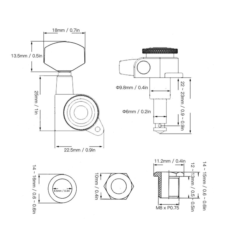 1、The fixed tuner prevents the gear from being exposed to the air and reduces rust, durable. 2、These tuning pins can tightly fix the strings, allow the guitar to maintain the pitch to improve playing pleasure. 3、Equipped with screws, easy to install and remove, the tuning guitar strings are not easy to loosen. 4、Applicable to almost all acoustic guitars and electric guitars, you can quickly and accurately adjust the guitar string. 5、High‑quality alloy material, have a long service time, can replace old, damaged tuning pegs.
