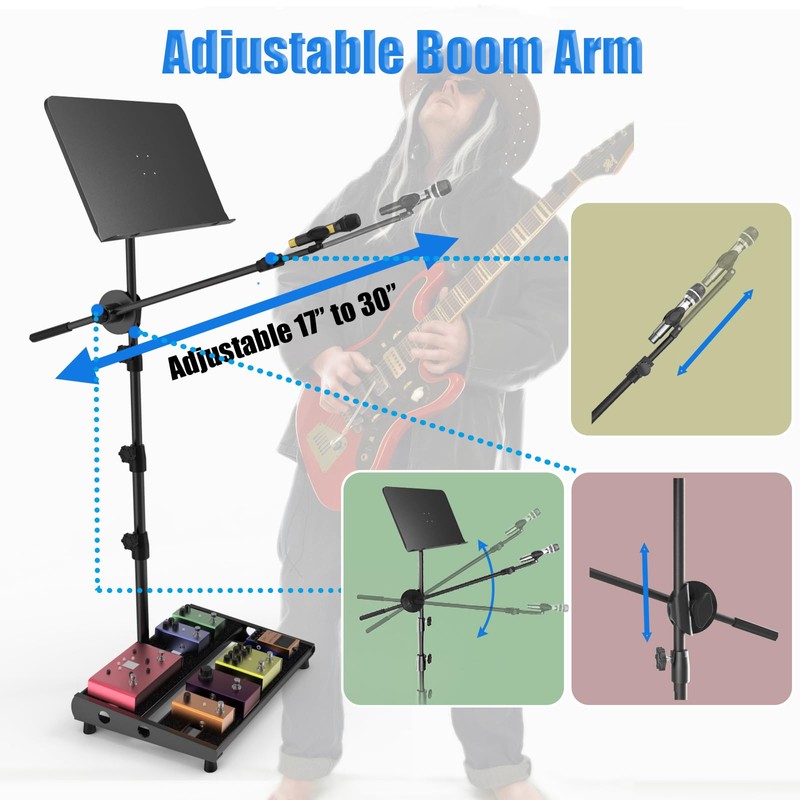 - 【Adjustbale boom arm & two mic holder】The Kereal pedalboard comes with two microphone holder and a adjustable length boom arm from 17" to 30",The screw is 3/8",suits for most microphone.