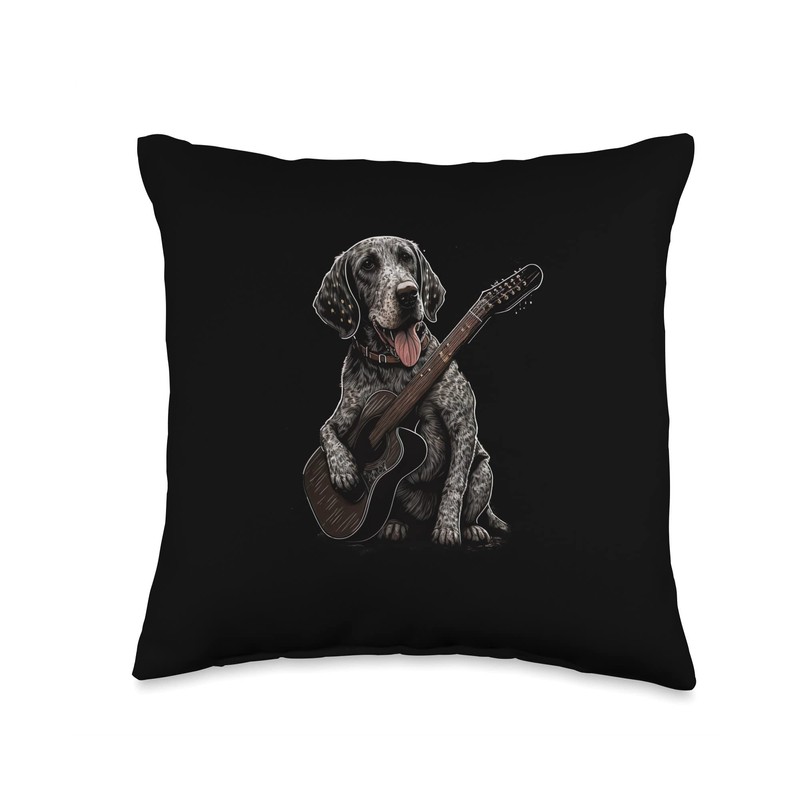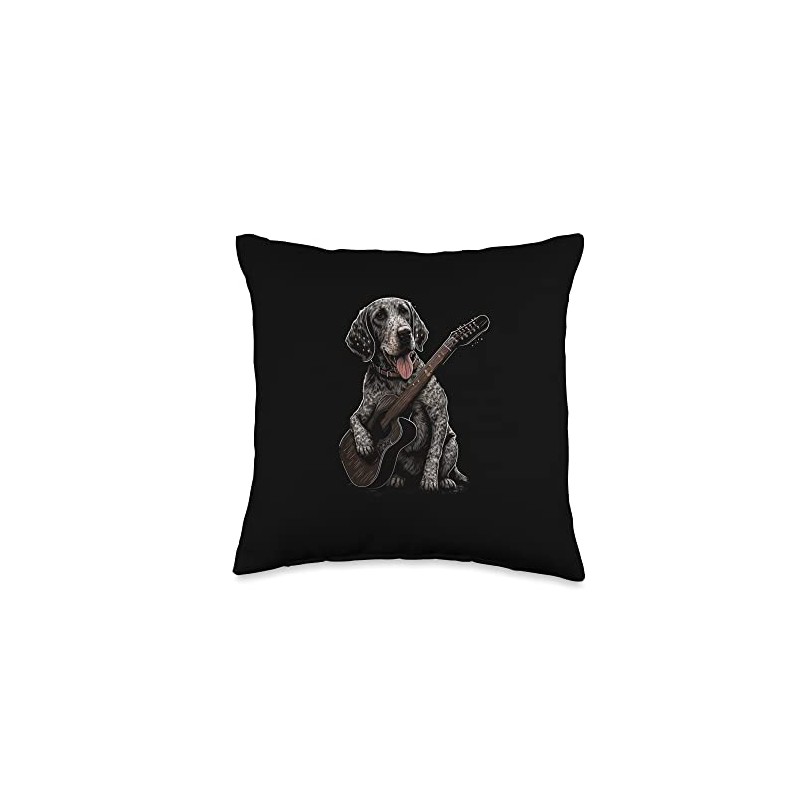 Guitar playing GSP German Shorthaired Pointer Throw Pillow