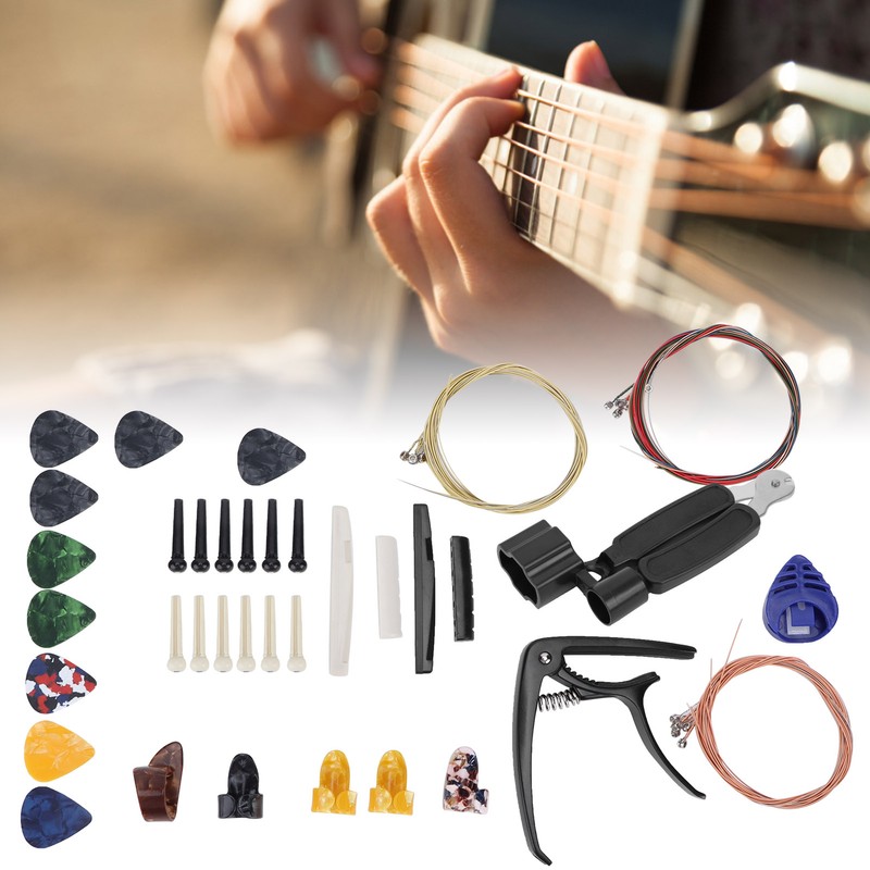 Guitar String Replacement Kit Accessory Set Changing Tool Pack Pick Holder Bridge Pin