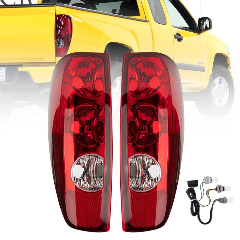 GuiTT Tail Light Assembly Compatible With 2004-2012 Chevy Colorado GMC Canyon Passenger and Driver Side Halogen Brake Rear Lamp Included Bulbs and Harness