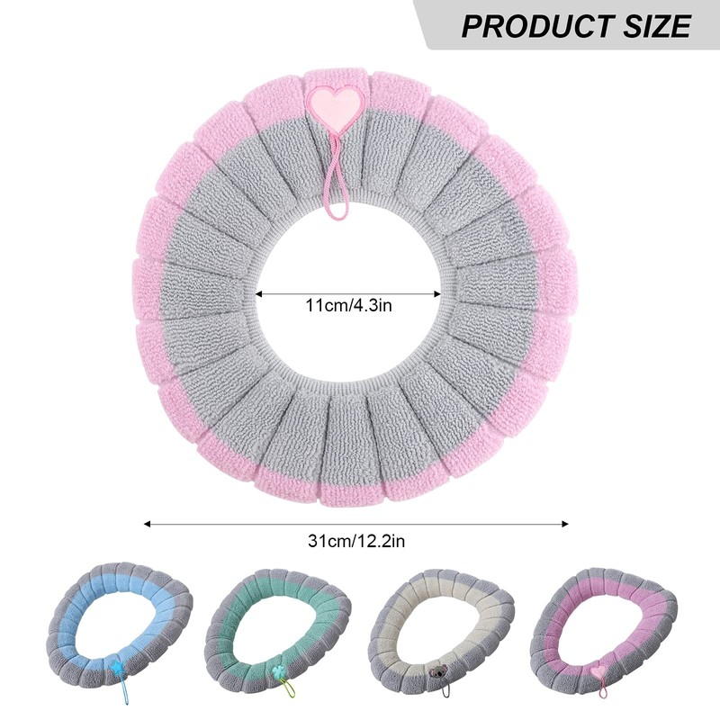 Gukasxi 4 Pieces Toilet Cover Seat Pads with Handle Lid Cushion Thicker Bathroom Soft Stretchable Washable Fits All Oval Seats, Multicolor