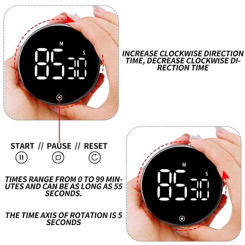 - Magnetic Timer: This magnetic timer for kitchen has powerful magnets on the back and can be placed directly on any iron surface, such as classroom whiteboard, students tablet, iron wall, fridge, sports gym etc.
