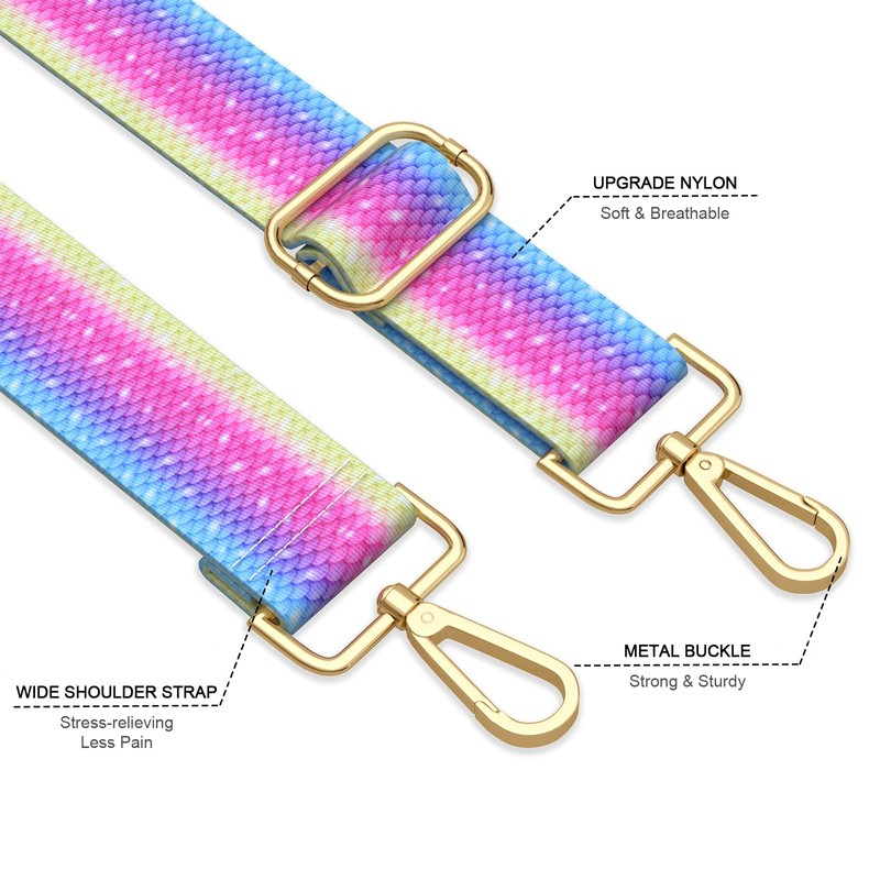 • High Quality Material: Strap for bags made of high quality nylon materials, smooth, soft and breathable. Individual hand sewing, built for last. The sturdy metal buckles 360 degrees rotatable, easy to install and replace