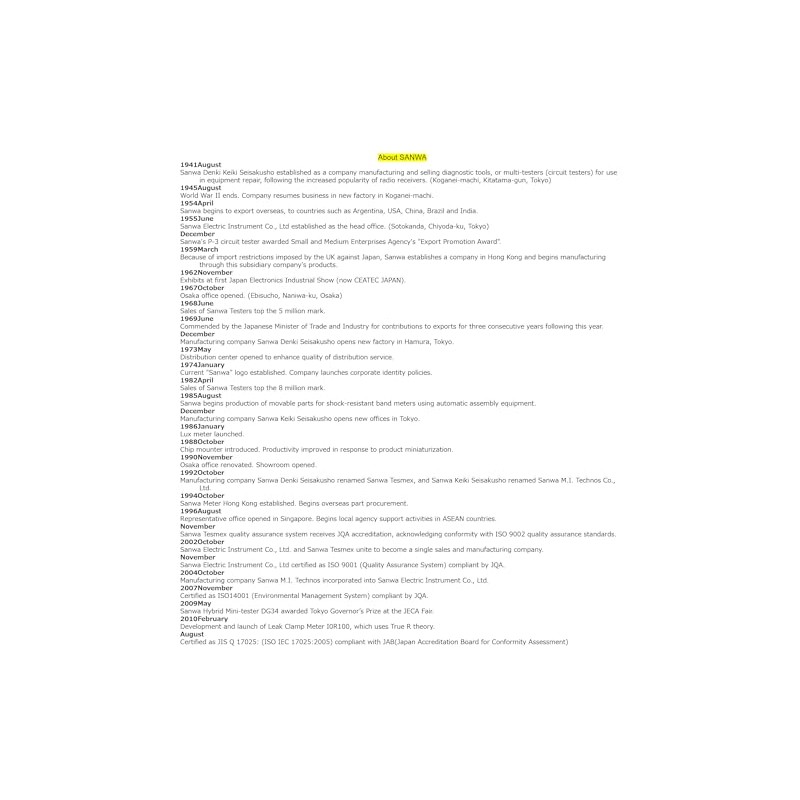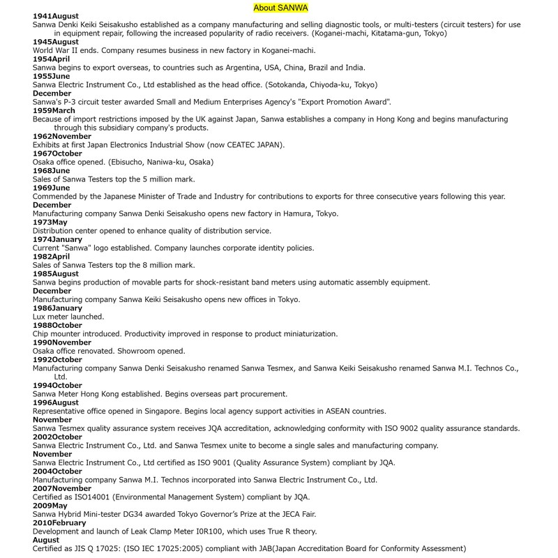| Manufacturer: | Sanwa Electric Instrument Co., Ltd(Japan) |