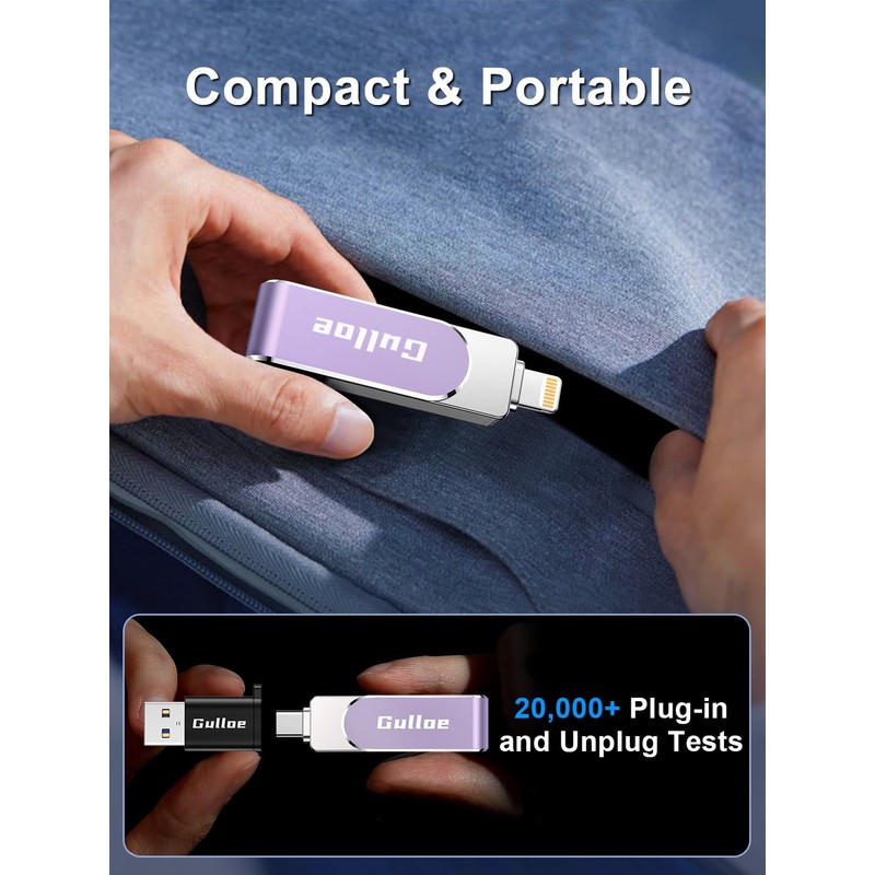 - Universal CompatibilityThe USB flash drive is equipped with USB-C Port/USB-L Port/USB 3.0 Port (Independent interface), which is convenient for data transmission between different devices and gets rid of the shackles of data cables and iCloud. You can store your favorite videos, photos, movies, and music directly on the memory stick and watch them on your mobile phone at any time. Compatibility iPhone 16/15/14/13/12/11/8/7/6/SE/XR/XS/XS Max/X Series, iPad Air Series/iPad Pro Series/Android smartphones Series. (Tip: For iPhone/iPad System Version Requires iOS 13 or Higher. For Android smartphones Need to open OTG function)