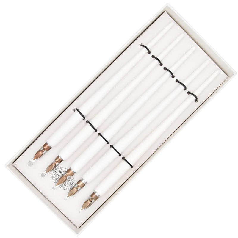 Gullor Wooden Cartoon Pen Set Calligraphy Dip Pens with 5 Size Nibs for Manga/Comic/Word Art/Pen-and-Ink Drawing, White