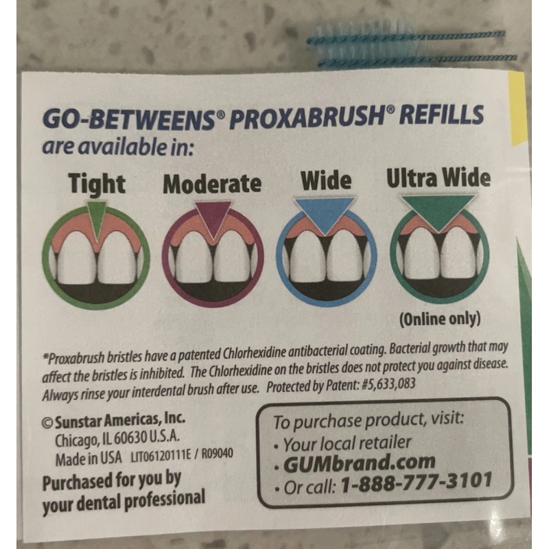 GUM 612 Proxabrush Refills Go-Betweens Cylindrical Brush 18 (2)packs - 36 Total.