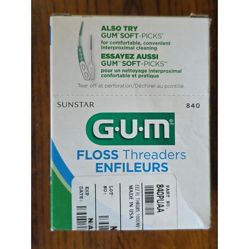 GUM Sunstar Butler 840PQA GUM EEZ-Thru Floss Threaders 100 Pcs/Pk