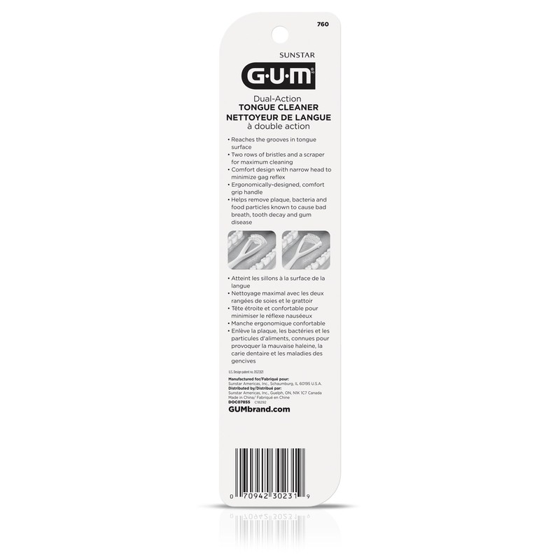 GUM Tongue Cleaner - Dual Action Soft Bristled Tongue Brush with Tongue Scraper for Better Oral Hygiene - Bad Breath Treatment (3pk)