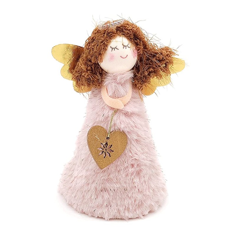 - The delightful decoration wears a plush dress and heart decorated, has a pair of beautiful wings, it will be a nice cheery addition to your Christmas tree decoration.