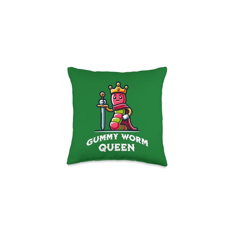 Gummy Worm Queen Funny Gummy Worm Lovers Saying Throw Pillow