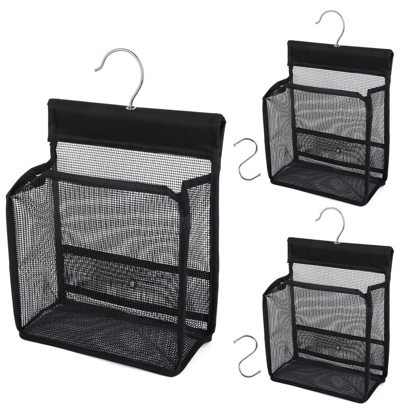 GUMQDD Mini Hangable Mesh Bathroom Storage Basket, Foldable Shower Caddy Storage Basket, Ideal for Gyms, College dorms, RV bathrooms, Travel and Pool Locker Rooms (3)