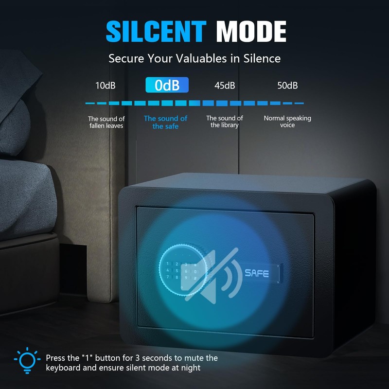 - Internal Protection & Silent Mode: Dononr gun safe offers secure storage for pistols and valuables. We've enhanced internal protection with a custom carpet to safeguard your valuables. Additionally, if you don't like the sound of the buttons, you can set it to silent mode.